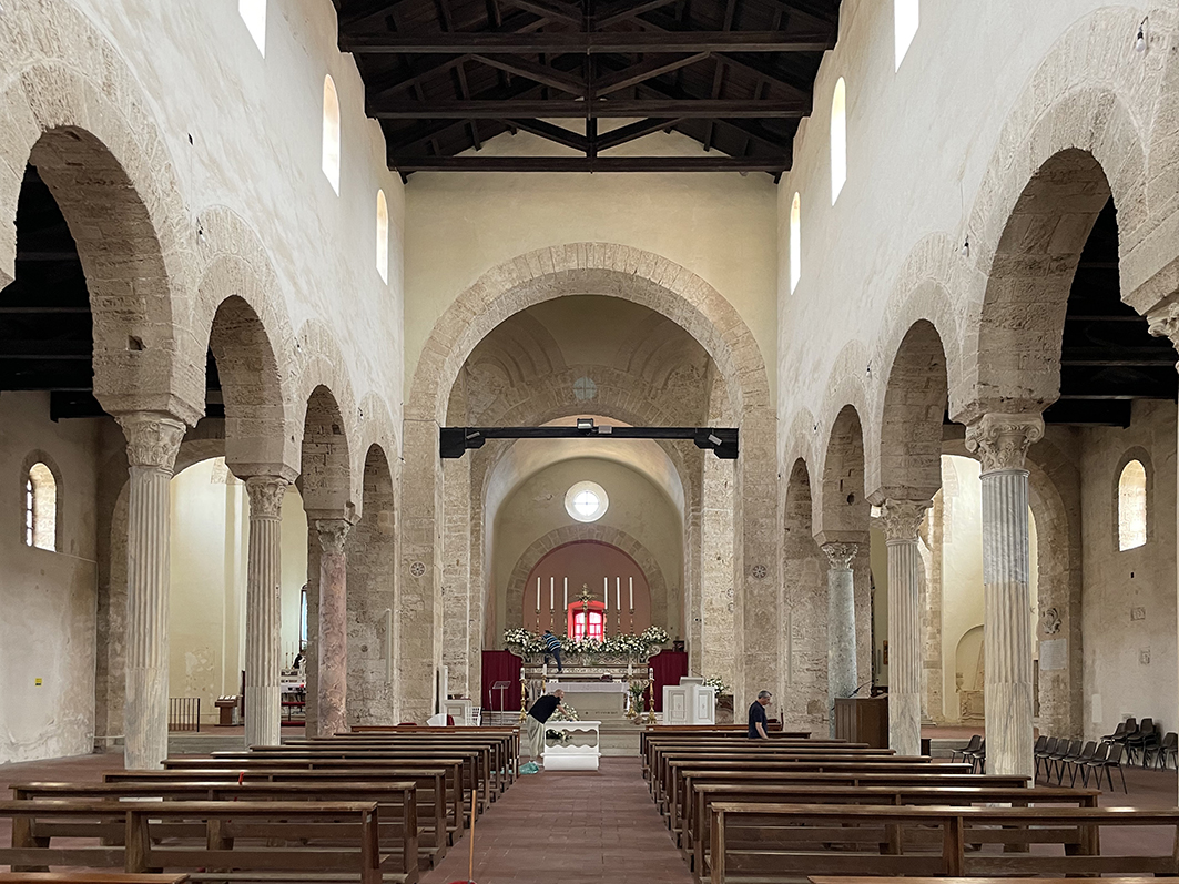 The crypt space was excavated below the Norman cathedral, on the site of a Byzantine church, that was extended in 1045, with three arms of the same length, which testify to an initial Greek cross layout.